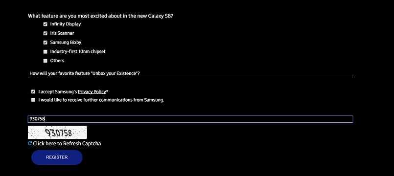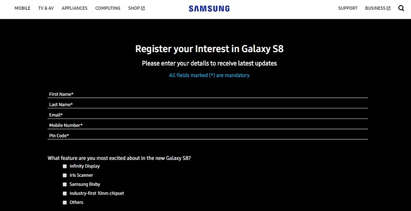 As we all know that Samsung galaxy S8 and S8+ is going on sale from April 21 in some markets, now Samsung has started registration process for the S8 and S8+ in India.This registration is basic one which will be like notification will be sent if user register here with there Name,Contact details Email ID and Pin Code. Do note that here Samsung is not asking to make any payments as it is just for getting notified about pre-booking, sales & pricing info of the new smartphone.