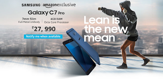 Samsung launches its mid-ranger series with Galaxy C7 Pro today in India for the price of Rs.27,990/-.It is going on sale on April 11, 2017, exclusively on Amazon India.The smartphone will come in two colour options, like Gold and Navy blue.