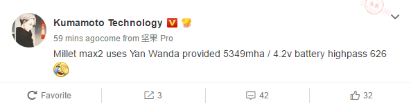 As per Kumamoto post on Weibo, Mi Max 2 will be packing 5,349 mAh Battery and will be powered by SD 626 chipset.The original Mi Max had lesser capacity battery with 4000mAh and was powered by SD 650 3GB & 32GB storage & SD 652 chipset for 4 GB RAM & 128GB storage Model.Mi Max 2 too will have 4GB RAM,64GB storage and will be powered by SD 626 chip. The higher variant of Mi Max 2 will be powered by SD 660 with 6GB RAM and 128GB storage,as per rumors.