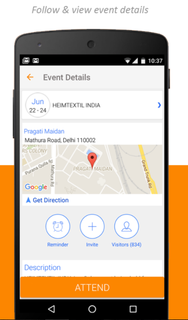 10times App is designed very simplistic manner and looks elegant.It has simple UI swipe from the left to Discover Events happening near to you.There is also filter option where you can filter out your preferences and search the event.The app also guide you to the event with navigate option in the event description. Not that all even you will get the Speaker/Exhibitor details of that particular event happening.