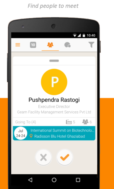 Besides finding events, you can also search for other professionals from your industry attending the event, schedule meetings and connect.