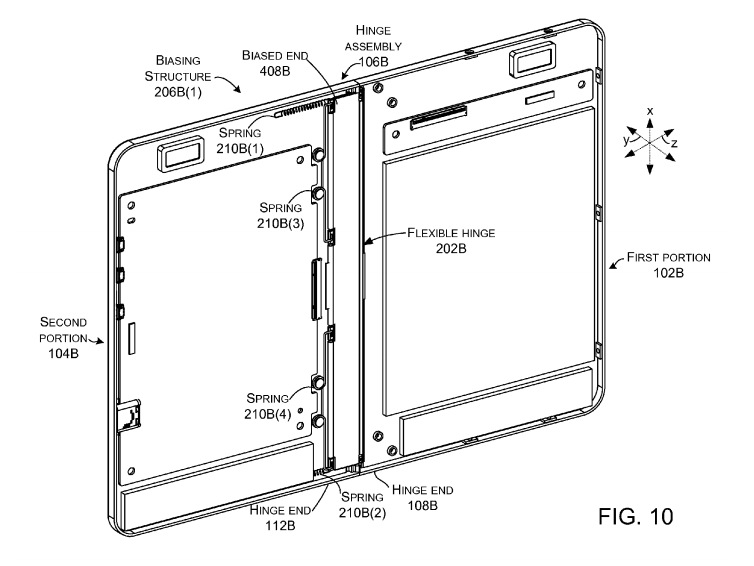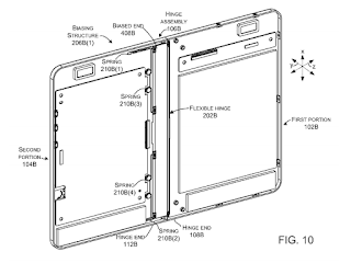 As per the images, we can see that tablet design is smaller and is of the size of a smartphone.The tablet has series of hinges which makes it possible to fold in various angles.When the tablet is at 0 degrees it is closed and when it is at 180-degree tablet is open in a flat manner and will be completely open when it is at 360 degrees.At 180 degree the inner screen of the device will provide single UI.In other layouts, it can provide a separate interface on each display.There are series of magnets which will help the device to hold in different types of configuration.At 180 degree magnet enables the screen to provide a seamless experience.