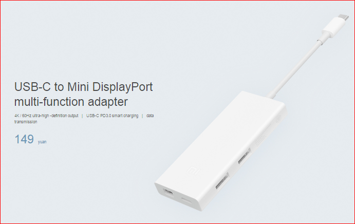 Xiaomi has added one more accessories on Mi mall which is an USB Type C to Mini DisplayPort Multi function adapter. The adaptor has 4 different ports.The adaptor is priced at $29 and is already available for purchase from Mi Mall.