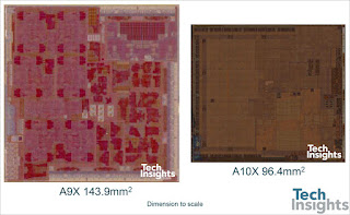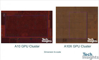 As per leaks gave by TechInsights Apple A10X will have 3 Fusion CPU now and 12 Cluster GPU which is also seen in A9 chip.The CPU cores are on the right and 12 Cluster GPU on the left.