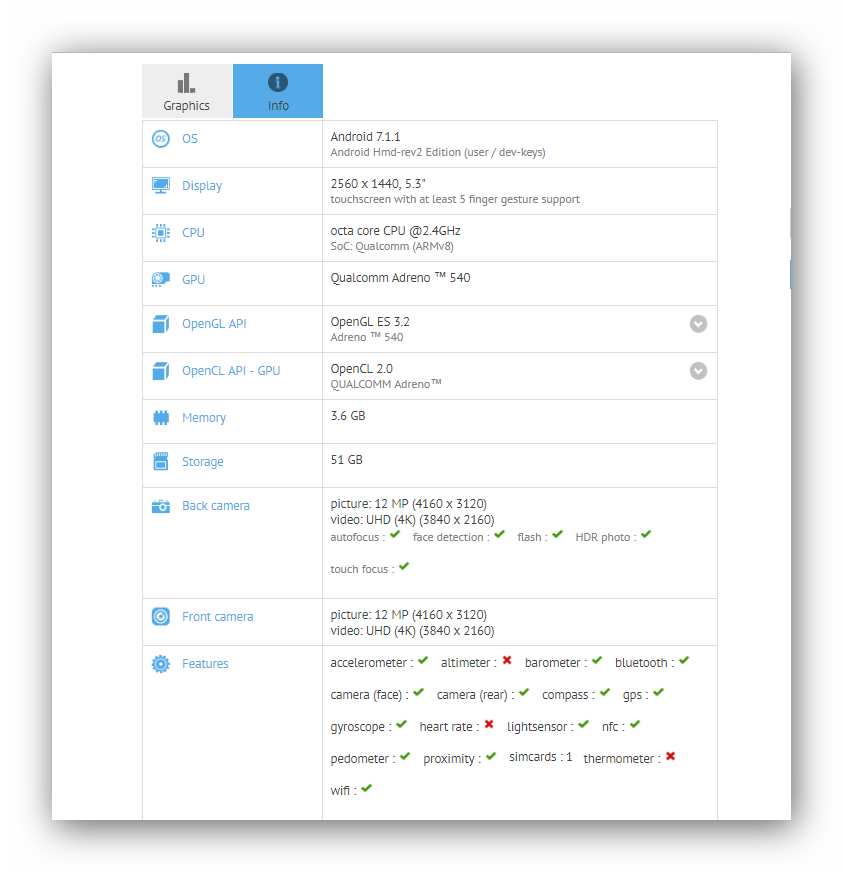 As per GFX Benchmarks, Nokia 9 is having 5.3 inches QHD display with a resolution of 2560 x 1440p.It is now powered by SD835 chip coupled with 4GB RAM and is likely to have 64GB onboard storage, there are no details regarding support for microSD cards.The device is running Android 7.1.1 out of the box.Nokia 9 will come with a 12MP front camera and 12Mp rear camera with capability to record videos up to 4K for both back and front camera.The rear camera also comes with Face detection, AF and HDR it also has Dual LED flash.