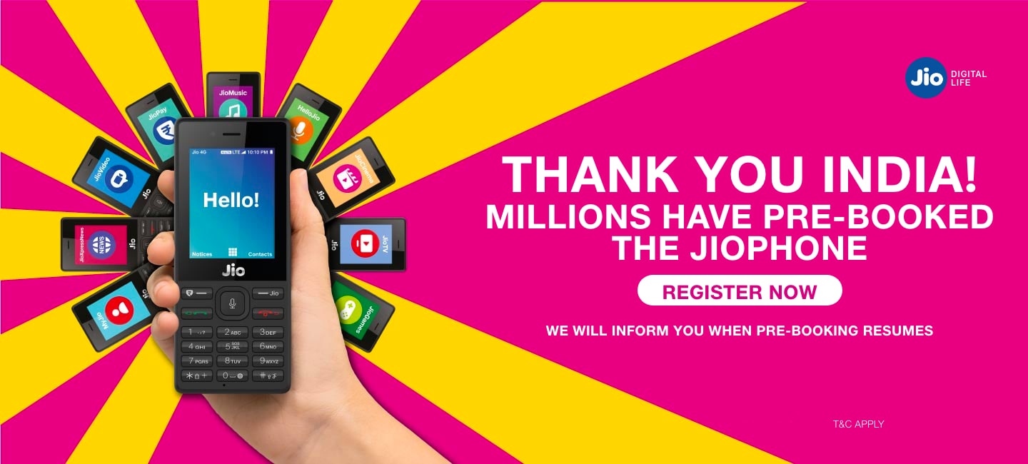 The JioPhone will have a 2MP rear camera and VGA 0.3MP front-facing camera which supports Video calls and also Video recording.The connectivity options include Single SIM with 4G LTE and VoLTE support, FM Radio, Wifi, GPS, LED Torch, Bluetooth 4.1 BLE, NFC, 3.5 mm audio port and micro USB port at the bottom of the device.You can even cast the content from JioPhone to any TV via a separate cable which you need to buy separately.All this is fueled with user replaceable 2000 mAh battery which has a standby time of 15 days as per Jio and device is running on KAI OS.