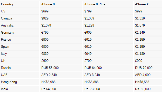 Apple finally launches its much awaited and most rumored devices with Apple iPhone 8, Apple iPhone 8 Plus and Apple iPhone X in Steve Jobs Theater at Cupertino.The surprising fact is that now Apple all the three devices will be available in India in the first list of countries.This is the first time Apple has included India in the very first list of countries where new iPhones will be launching.The Apple iPhone 8 pricing starts from Rs.64,000/-, Apple iPhone 8 Plus at Rs.73,000/- and the Apple iPhone X will cost Rs.89,000/- respectively. So be prepared to sell your kidney to get these pricey devices.Here is the list of pricing details for other countries.