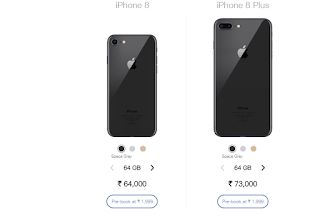 Apple iPhone 8  is priced at Rs.64,000 for 64GB and Rs.77,000 for 256GB & Apple iPhone 8 Plus is priced at Rs.73,000 for 64GB and Rs.86,000 for 256GB.The Apple iPhone 8 and iPhone 8 Plus can be pre-booked by paying Rs.1,999 from Jio website too.
