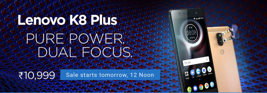 After launching Lenovo K8 Note last month, today Lenovo finally launches its Budget smartphone with Lenovo K8 Plus which was leaked earlier.The Lenovo K8 Plus is priced at Rs.10,999/- for 3GB RAM and 32GB storage variant and is exclusive to Flipkart.Lenovo K8 Plus will go on sale via Flipkart starting from tomorrow at 12:00 PM.