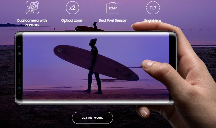 The Samsung Galaxy Note 8 is the first Samsung smartphone to feature Dual Camera setup.Samsung Galaxy Note 8 comes with the dual 12MP camera one act as wide angle lens of 77-degrees which is having an aperture f/1.7, Dual Pixel AF, Pixel size of 1.4 microns and sensor size of 1/2.55″.The other camera act as a telephoto lens which is too of 12MP AF sensor with an aperture f/2.4, having 45 degrees FOV, the Pixel size of 1.0 microns, the sensor size of 1/3.6″ and has 2x optical zoom.The Dual camera setup is similar to one found on iPhone 7 and OnePlus 5.The Dual rear camera also comes with Dual OIS and also has 10x digital zoom.The rear camera can record videos up to 4K and also has support for VDIS.The selfie camera is an 8MP sensor with an aperture of f/1.7, having wide angle lens at 80 degrees, the Pixel size of 1.0 microns and sensor size of 1/3.6″.
