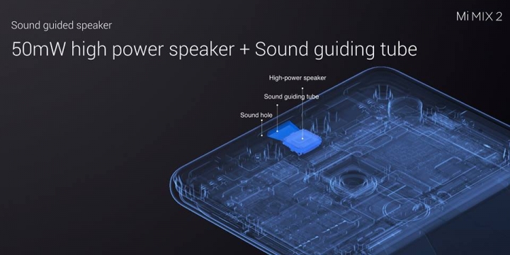 Xiaomi Mi Mix 2 comes with 5.99 inches Full-Screen 2160 x 1080p FHD+ display with an aspect ratio of 18:9.Now the Speaker and Proximity Sensor is hidden and can be found on top of the display which has a small hole for speaker and Proximity sensor.Now with Mi Mix 2, it comes with a 50W speaker with Sound Guiding tube.