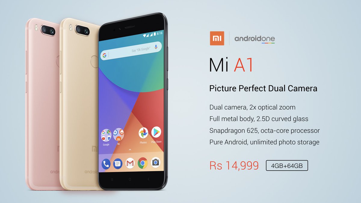 Xiaomi finally launches its first Android One device with Mi A1 in India which is none other than the earlier in July launched Mi 5X.Xiaomi Mi A1 for 4GB RAM+64GB storage version is priced at Rs.14,999/- and will go on sale on Flipkart starting from Sept 12 at 12:00 PM and will also available via popular Offline stores.The launch offers include 5% discount if you own Axis Bank Buzz Credit Card and Airtel user will get extra 200GB of 4G data.The device will be available in three colors with Black, Gold, and Pink.Initially, the device will be available only in Black and Gold color options.The Xiaomi A1 will be launched Globally in the following countries.