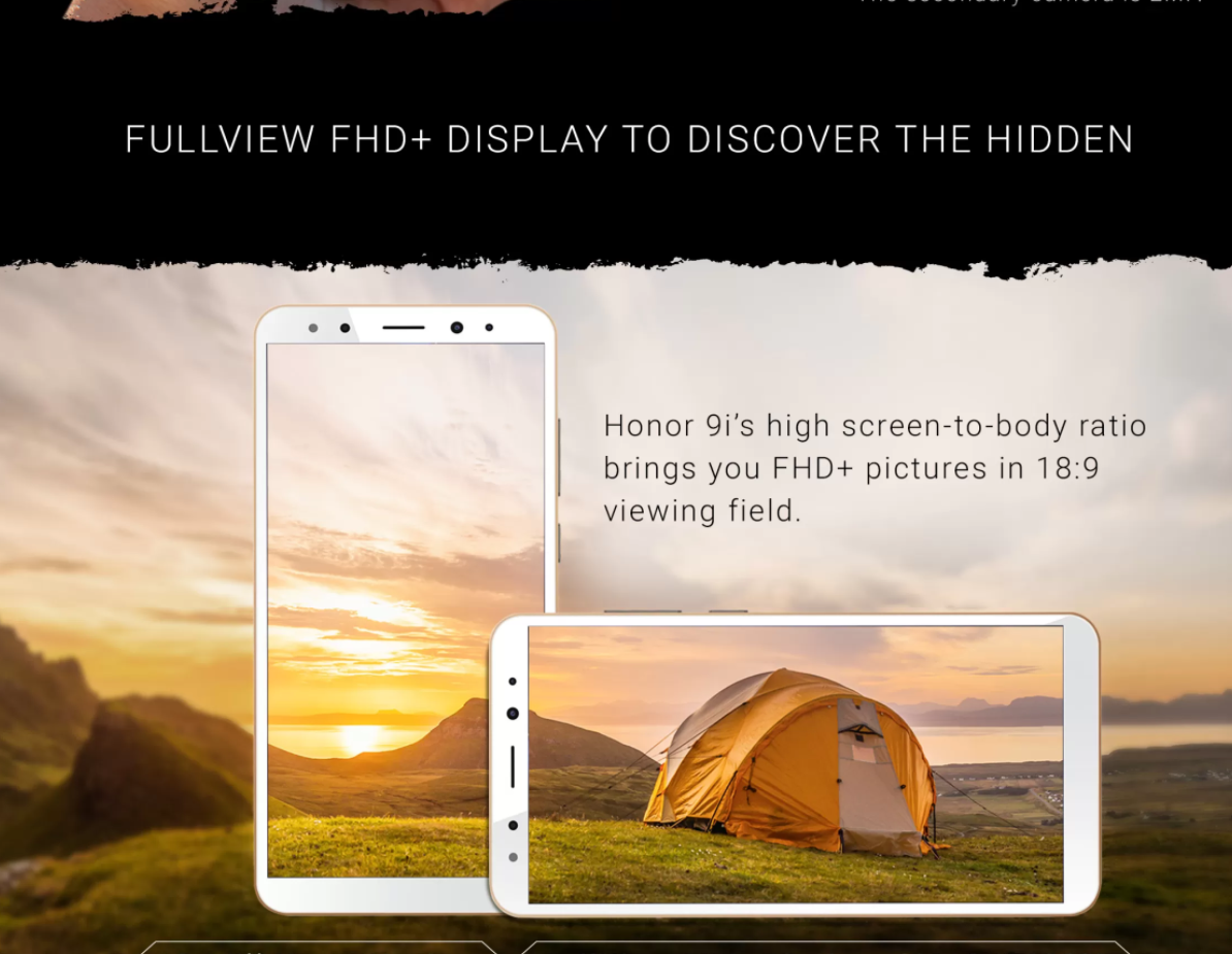 Huawei Honor 9i sports a 5.9 inches FHD+ FullView display having an aspect ratio of 18:9 similar to LG Q6.The display is covered with 2.5D curved glass on top and has 83% screen to body ratio.There is no mention of any protection for the screen.Huawei Honor 9i is powered by Huawei made Kirin 659 chip clocked at 2.36 GHz coupled with 4GB RAM and 64GB onboard storage which can be expanded via microSD card up to 128GB.