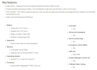 As per listing on T-Mobile support page confirms some of the key features of the HTC U11 Life like the Edge Sense.Yes, HTC U11 Life will come with Edge Sense feature which was last seen on HTC U11 which was the flagship smartphone from HTC.Other features include Dual AI support with Google Assistant and even Amazon Alexa support.It also has an IP67 rating which makes the device dust and water resistant and comes with same HTC U Sonic headphones which were bundled with HTC U11.T-Mobile has taken down the HTC U11 Life listing from its website.