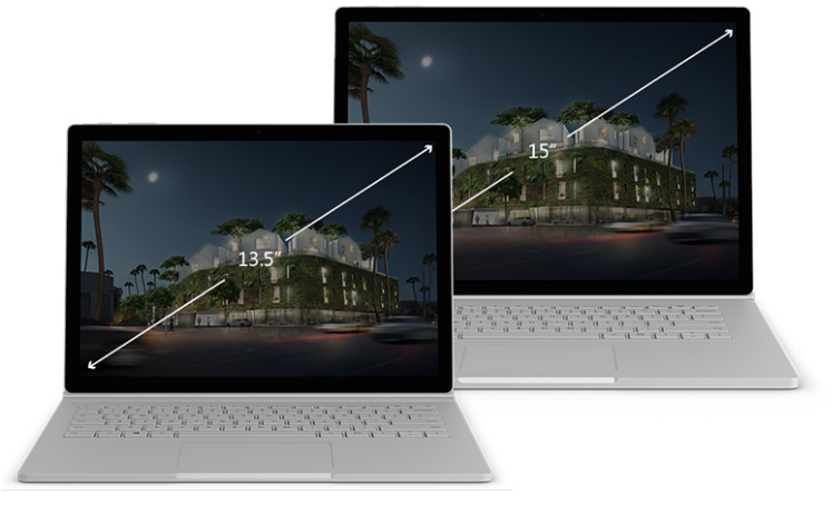 The Microsoft Surface Book 2 13.5″ comes with 13.5 inches Pixel Sense display having a resolution of 3000*2000 with a pixel density of 267ppi whereas the Microsoft Surface Book 2 15″ comes with 15 inches Pixel Sense display having a resolution of 3240*2160 with a pixel density of 260ppi.