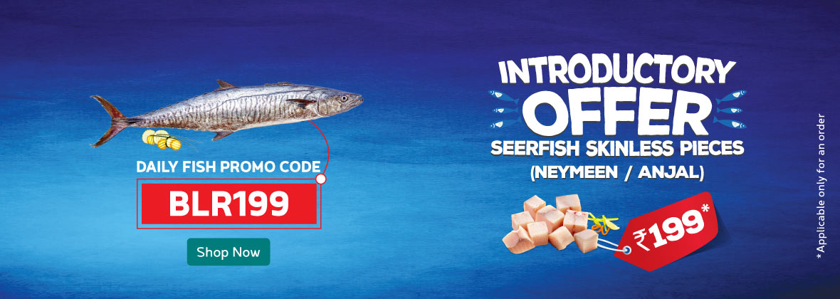 The launch offer includes Seer Fish which cost Rs.520/- for 500 grams is now available for the price of Rs.199/- by just applying the coupon code BLR199 at the checkout. Note: This offer is only available for one order each user.