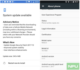 Nokia budget smartphone Nokia 3 is now receiving OTA update weighing around 345MB.Earlier Nokia 8 got the Android Oreo update and now we have Nokia 3 receiving December Android Security update which is the first device from Nokia to receive the latest version of the Android security update.