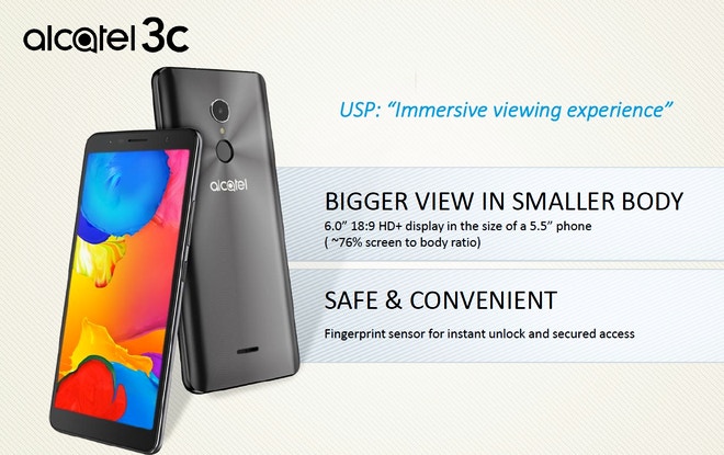 Alcatel unveiled their new lineup of smartphones with Alcatel 1X, Alcatel 3V, and Alcatel 5 at CES 2018 earlier this month.Now Alcatel has launched the affordable smartphone with Alcatel 3C in Italy.Alcatel 3C will be available in Metallic Gold, Black and Blue colours.The Alcatel 3C is priced at 129.99 Euros (Rs.10,200/-).
