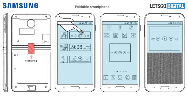 As per the patent, Samsung upcoming foldable smartphone aka Samsung Galaxy X will act as the clamshell smartphone which comes with invisible leaf spring and bends sensor that folds 40% of the device-screen able to use once folded and act as full screen once unfolded. With the help of a bend sensor, one can detect the bend angle, speed, state and even time.