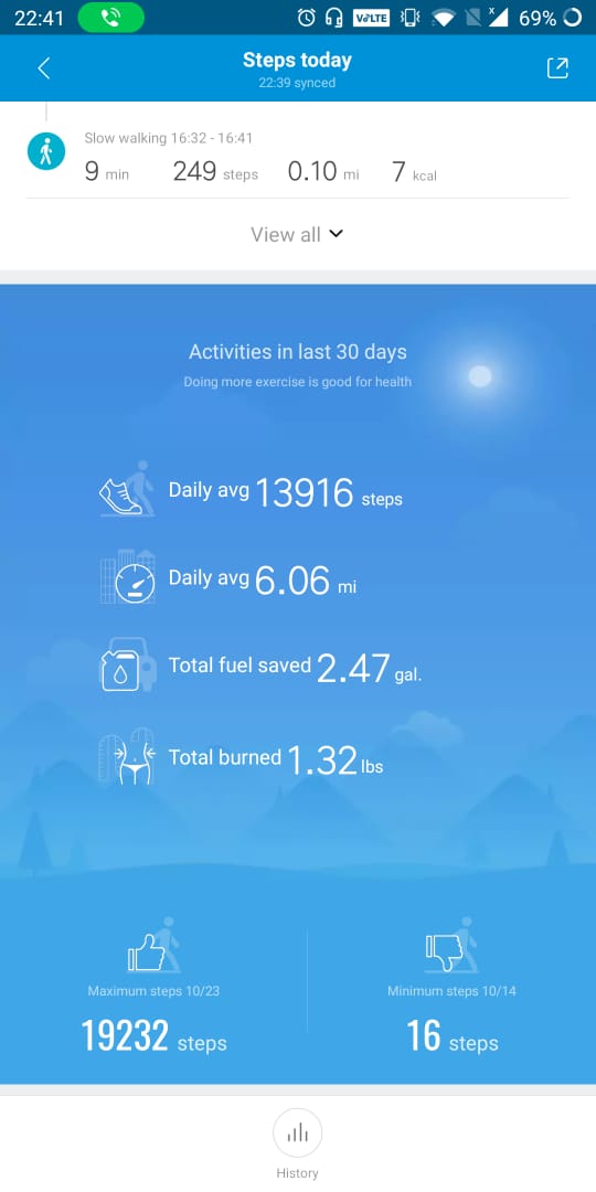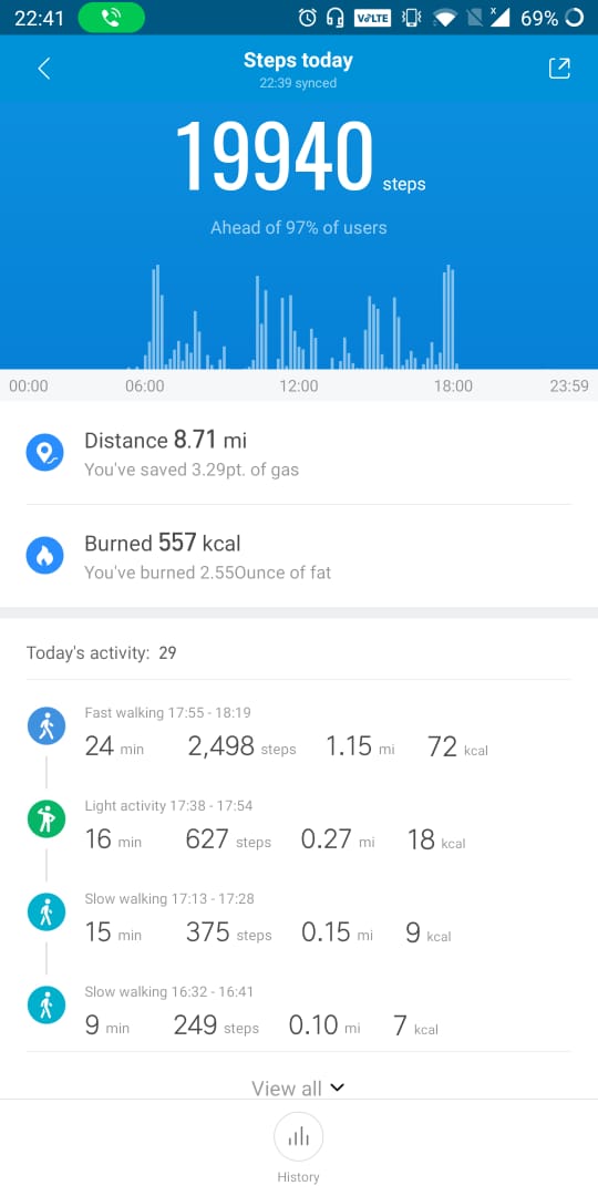The new Xiaomi Mi Band 4 also tracks steps and distance but it’s not accurate similar to the previous generation it always shows additional steps which might be major let down and Xiaomi has still not fixed it. So one looking for accurate step and distance count just ignore this band and is not for you. It also has some additional exercise, cycling and swimming mode to track the activity which works as expected but not accurate.