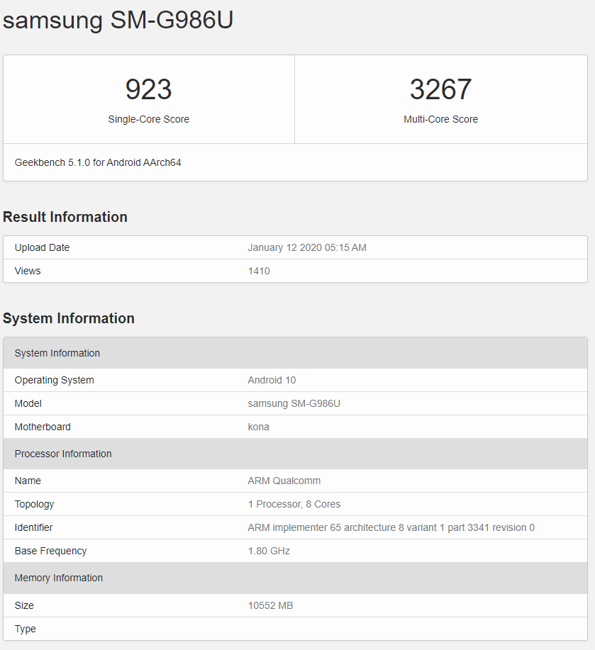 Further, there is hardly any difference in terms of specs as both the variants come with same SD865 SoC coupled with 12GB RAM and runs on Android 10 out of the box. Apart from that, all the models listed in Geekbench comes with 5G support. All the three models under Galaxy S20 series performed average might be due to the testing unit.
