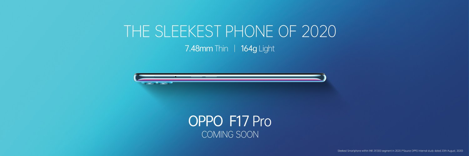 Earlier Jan 2020 Oppo introduced the new Oppo F15 in India and almost after eight long months we have a successor with Oppo F17 Pro landing soon. The new teaser video on Twitter shows the left side of the device which turns out to be the slimmest smartphone of 2020 with just 7.48 mm thin. There is a SIM card slot along with Volume rockers.