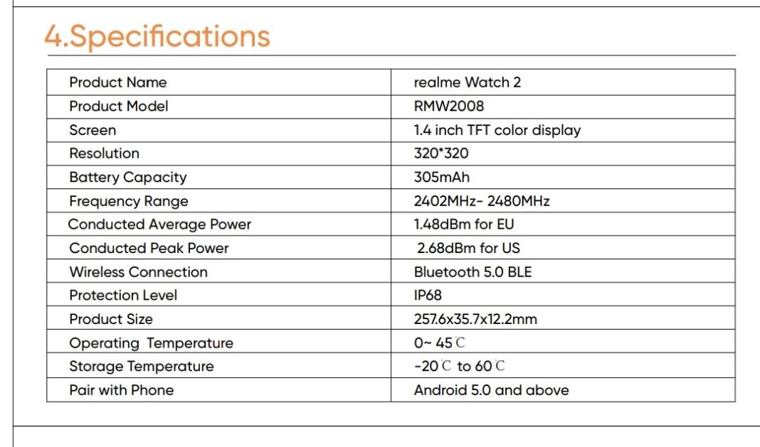 We also got the user manual of the new Realme Watch 2 leaked. The new Realme Watch 2 will still sport 1.4 inches TFT display with a resolution of 320*320p. It gets a huge battery now with 305 mAh that is double that of the predecessor. The Realme Watch 2 will also get a Bluetooth 5.0 LE and IP68 rating making it dust and water-resistant. It is compatible with any phone that is running on Android OS 5.0 and above.