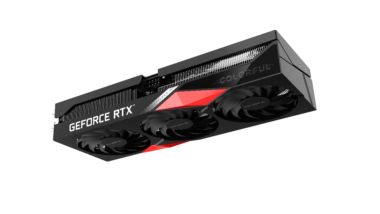 The next is the new COLORFUL GeForce RTX 3070 Ti NB 8G-V new look with its improved thermal cooling design and RGB lighting while retaining the eye-catching Black+Red Design. The three 90mm cooling fans quickly dissipate heat from the high-performance heat sink with six 6mm-diameter heat pipes with direct touch to the GPU.
