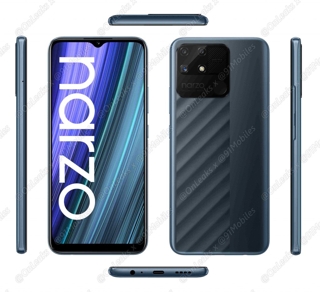 This week, the Realme Narzo 50A was spotted on the BIS website, indicating that it would launch in India soon. Realme is also skipping the Narzo 40 series, which makes sense since the number ‘4’ is considered unlucky in China. Steve Hemmerstoffer aka @OnLeaks has provided us with the first photo of Realme Narzo 50A. An official press renders Steve managed to get his hands on reveals a dual-tone budget phone with a large camera module.
