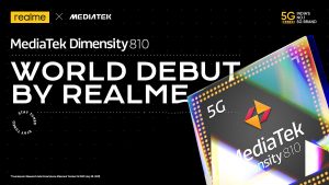 Realme India officially announced earlier today that it would release the world’s first Dimnesity 810-powered smartphone in the near future. In addition to twin 5G stand-by, Cortex-A76 CPU cores clocked at 2.4GHz, the chipset also has Cortex-A55 cores for power-efficient activities and Cortex-A76 CPU cores for high-performance applications. The Mali-G57 MC2 is responsible for the graphics processing unit. Support for up to LPDDR4x RAM and UFS 2.2 storage has been implemented.