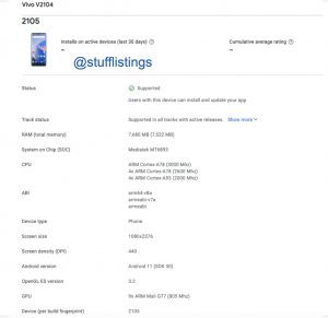 As per the listing, the new Vivo X70 Pro is listed as Vivo V2104 which is spotted to be running on Android 11 OS. The new Vivo X70 Pro is now powered by MediaTek Dimensity 1200 SoC and not the SD870 SoC. It comes with 8GB RAM and probably 128GB/256GB internal storage options.