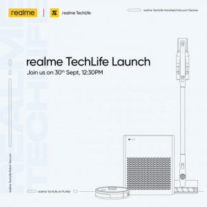 Realme announced today that it would launch the TechLife Air Purifier in India next week, on September 30. Realme will also introduce a Handheld Vacuum Cleaner and a Robot Vacuum Cleaner in India on Thursday.