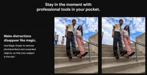 First, the marketing sites indicate that both phones include the much-anticipated Magic Eraser feature, as reported in our Pixel 6 Camera Features leak. The Magic Eraser may be used to erase undesirable items from photographs. The face deblurring function is currently marketed as “Face Unblur”. With the new Pixels, you’ll be able to capture realistic skin tones throughout the spectrum. Interestingly, one of the pictures says “Pixel Camera, Google Apps, and more” rather than “Google Camera”.