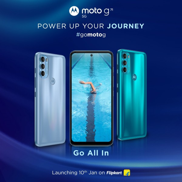 As per the teaser, we can see Motorola revealing the launch details for the next mid-range 5G smartphone with Moto G71 5G in India. The new Moto G71 5G will be available in two colors from the teaser with Green & Blue. Further, the teaser mentions that Moto G71 5G will be launching in India on Jan 10 at 12:00 PM.