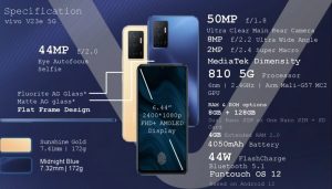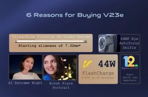 Powered by the MediaTek Dimensity 810 CPU, the Vivo V23e is an entry-level smartphone. The gadget comes pre-loaded with 8 GB of RAM and 128 GB of internal storage. It contains a battery with a capacity of 4,050mAh to keep the lights on. The handset is capable of fast charging at a rate of 44W when connected via USB-C. The V23e comes pre-installed with Android 12 and FunTouch OS 12, as well as other applications. A dedicated microSD card slot is provided for expanding the device’s storage capacity.