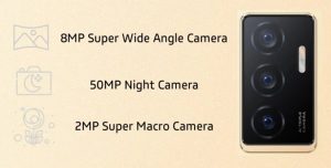 The 44-megapixel selfie camera of the Vivo V23e 5G under the display notch has focusing capabilities. The device’s back panel comes with a triple camera system. It features a 50-megapixel primary camera, an 8-megapixel ultrawide camera with a field of view of 115 degrees, and a 2-megapixel super macro camera.