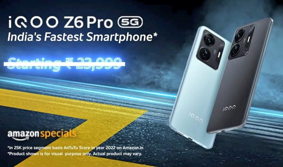 As per the source, the new iQOO Z6 Pro 5G will be priced aggressively in India. The new iQOO Z6 Pro 5G will cost Rs.23,999/- in India. It will come with flat Rs.1000/- off on select bank credit cards.