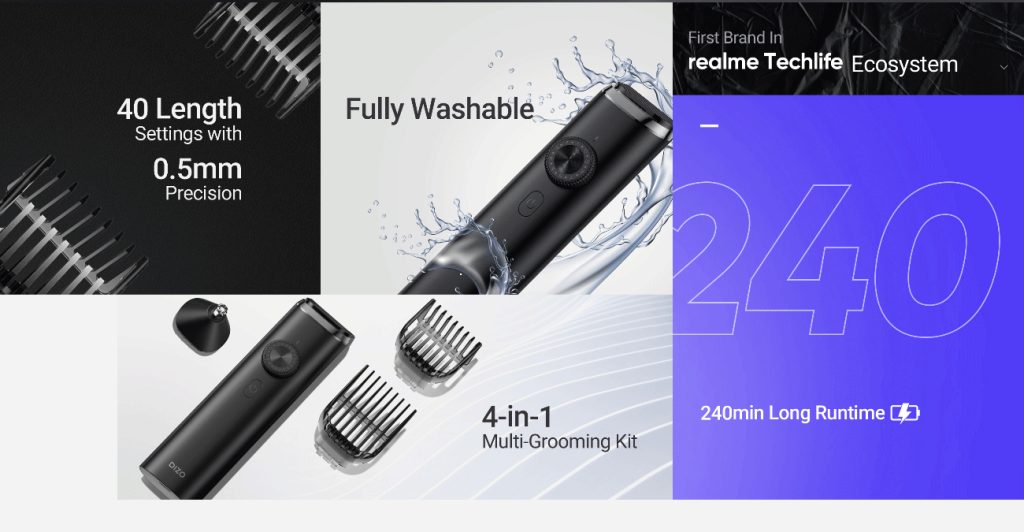 Realme Techlife’s DIZO brand has just launched the Dizo Trimmer Kit in India. A 4-in-1 grooming and styling system and blades that are 50% sharper make this one of the longest-running models on the market at 240 minutes.