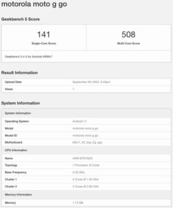 In addition, the device might run on the Android Go edition of the operating system, based on its name. The Android Go version is basically Android for smartphones with low RAM and storage. According to the benchmarking listing, the Moto G Go comes with 2GB of RAM, but there may also be a 3GB RAM version. There is no information on its storage option, but it is likely to be either 32GB or 64GB.