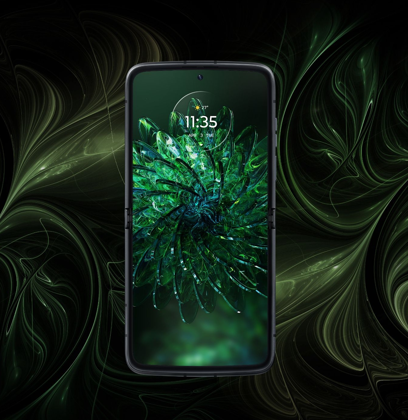 The new Moto RAZR 2022 measures 7.62 mm thick when unfolded and 16mm when folded and weighs 200g. The device comes with Single SIM support with 5G, 4G LTE, VoLTE, Bluetooth 5.0, WLAN, NFC, A-GPS, GLONASS, USB Type-C port and IPX8 certification. The Motorola RAZR 5G packs a lower 3500 mAh battery with a 33W fast charger. It arrives in just Black color and runs on Android 12 OS.