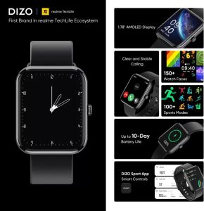 The Watch D Pro smartwatch has a tall 1.85-inch display with an impressive 600 nits of peak brightness and a 60Hz refresh rate. DIZO Health app provides advanced sports functions such as GPS running, route tracking, and workout report sharing. With noise cancellation for calls, this model supports Bluetooth 5.3. In addition, the device features a D1 SoC for smooth animations and improved user interfaces. More than 150 Watch Faces, a washable architecture, a GPU for processing, a titanium frame, and a silicon strap are also included.