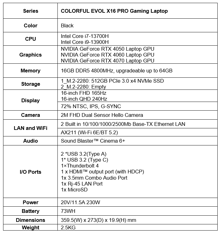 It features a 16-inch QHD 240Hz IPS display with support for NVIDIA G-SYNC technology. Last year, Colorful released the X15 XS laptop.