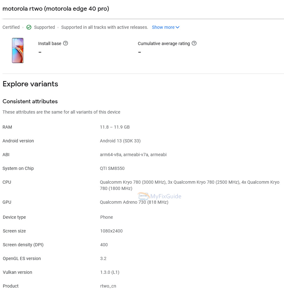 Google Play Console listing confirms Edge 40 Pro will support Google Services; that’s why it appears there. The device will also run Android 13 out of the box. Motorola will announce a possible launch window in an update soon.