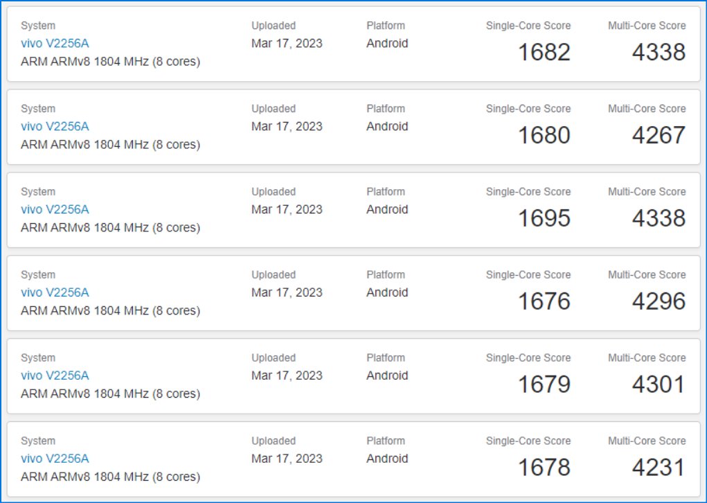 According to Geekbench, the Vivo X Flip scored 1680 on the single-core test and 4267 on the multi-core test. Samsung Galaxy S23 produces similar results with the same processor.