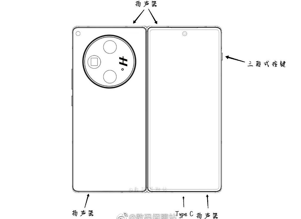 It’s a taller-aspect foldable than the Find N2, which may not appeal to everyone. There is a Hasselblad-branded triple camera on the back, with one lens clearly a periscope zoom. The right side also seems to have a mute switch.