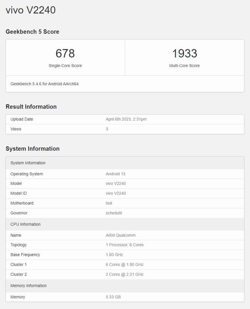 Some version of the vivo T2 is back from the dead. According to the Geekbench 5 database, a phone with the model number V2240 will launch on April 11 (Tuesday) in India.