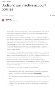 As part of an effort to boost security and optimize storage space, Google is implementing a new policy regarding inactive accounts. Inactive accounts that have been inactive for at least two years will be deleted later this year. Personal Google Accounts are affected, not business or school accounts. YouTube videos won’t be deleted, though, to preserve history.