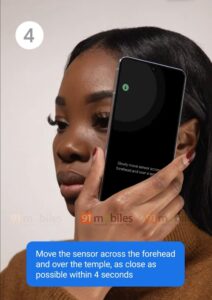 Make sure there are no accessories on your forehead or skin before you locate the white sensor. Bring the Pixel 8 Pro as close to your forehead as you can without touching your skin. After you tap the start button, move the phone towards your temple within five seconds. Your phone will vibrate and you’ll see your temperature once it’s measured.