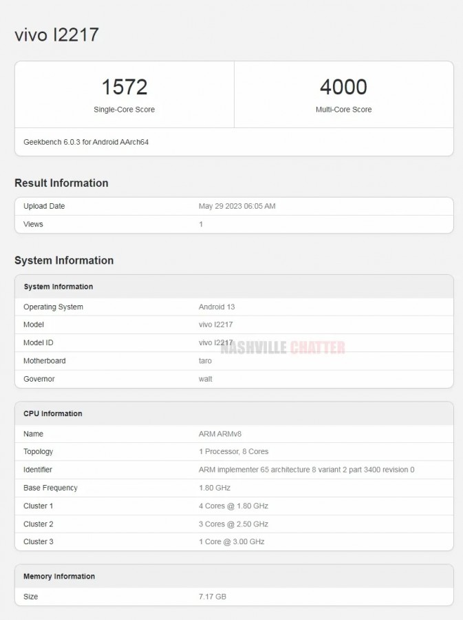 The listing indicates that the device has 8GB of RAM and Android 13. According to Geekbench 6, it scored 1572 points in the single-core test and 4000 points in the multi-core test.
