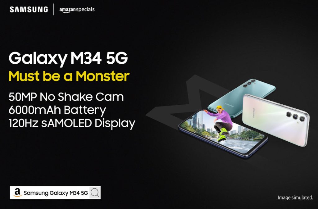 The new Galaxy M34 5G will sport 6.6 inches FHD+ AMOLED display with a 120Hz refresh rate. The device comes with Corning Gorilla Glass 5 on top. It is powered by Exynos 1280 SoC coupled with 6GB/8GB RAM and 128GB/256GB storage space. It measures 8mm thick and weighs 199g.